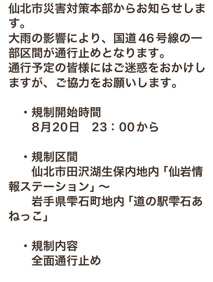 #国道46号、#仙岩峠 の通行止は解消されています。 雫石(盛岡)〜仙北(秋田)は、仙岩峠経由で行き来ができています。