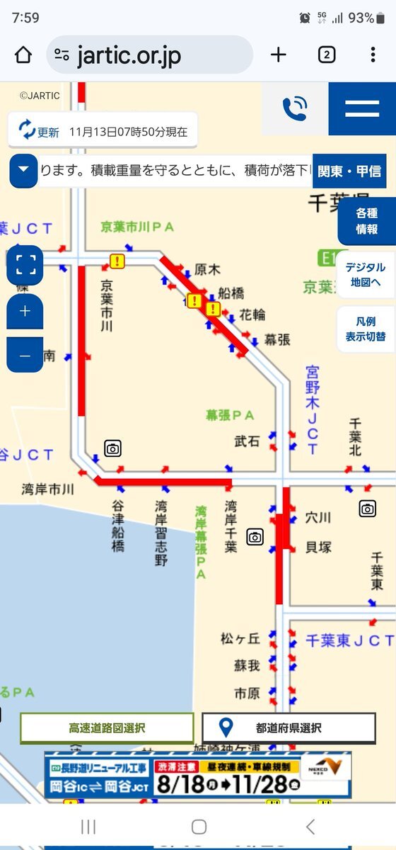 @mametamame44659私は成田方面から京葉道路へ入ろうとしたのですが、やめてそのまま東関道に。多分穴川から?渋滞時間がどんどん伸びてて怖くて通れませんでした😨🐻❓