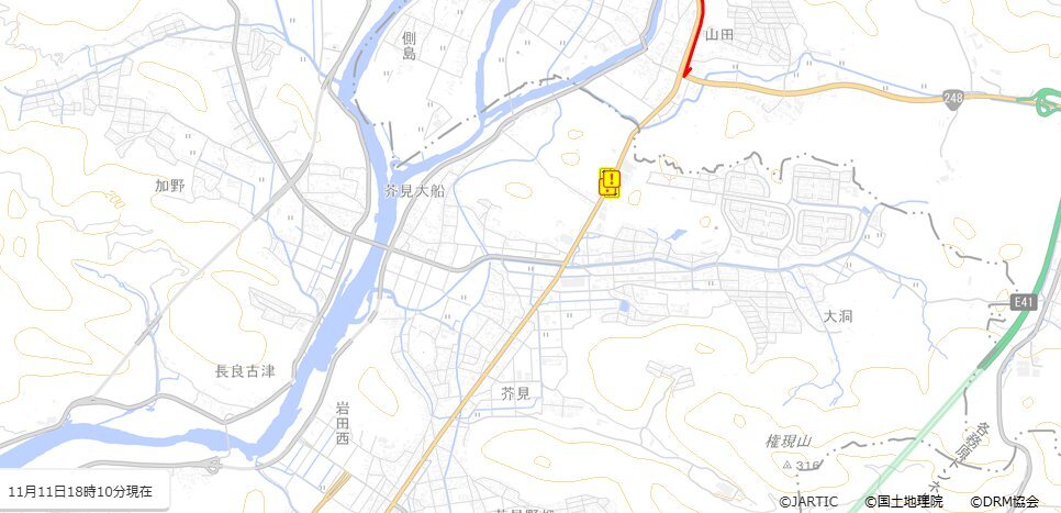 11/10 11:43【国道156号 事故 片側交互通行】 岐阜市の国道156号は、芥見堀田で事故のため、片側交互通行になっています。 最新の情報は⇒jartic.or.jp