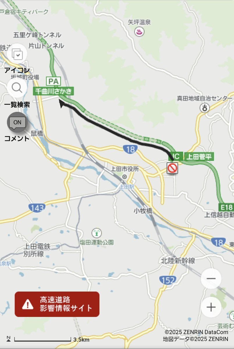 NEXCO東日本(関東) [事故通行止解除] E18上信越自動車道 上田菅平IC ⇒ 坂城IC(下り線) 2025/09/19 03:10より事故のため通行止解除 uenon.jp/archives/29542…