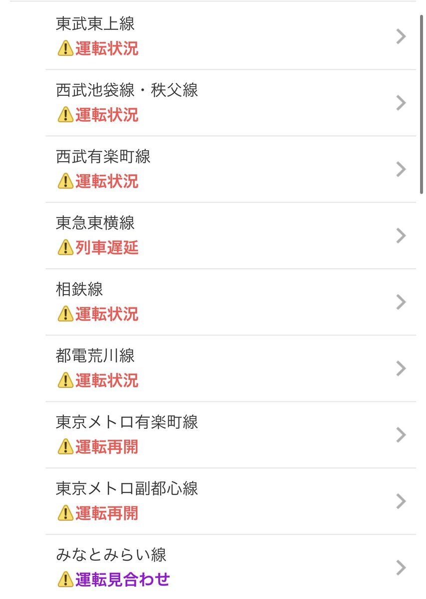 東京メトロ有楽町線と副都心線で全線運転見合わせ(30日午後5時半時点)(TBS NEWS DIG Powered by JNN) news.yahoo.co.jp/articles/b76a1… (東上線志木方面直通中止だから)和光市が代々木上原状態見え見え。 それにより、我が東横線菊名方面と相鉄いずみ野方面もダイヤ崩壊。 ましてや帰宅ラッシュなのに