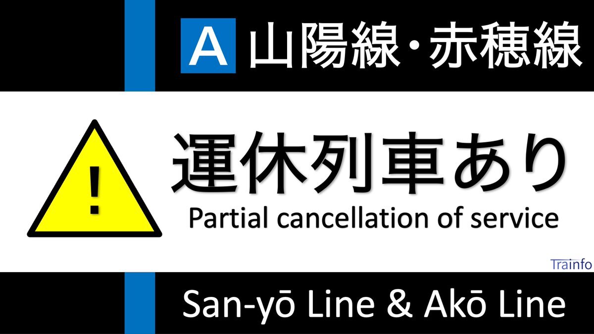 赤穂線【運転再開】 寒河〜日生駅間で発生した動物支障の影響で、播州赤穂〜日生駅間の運転を見合わせていましたが、07:50頃、運転を再開しました。なお、一部列車に遅れや運休が出ています。