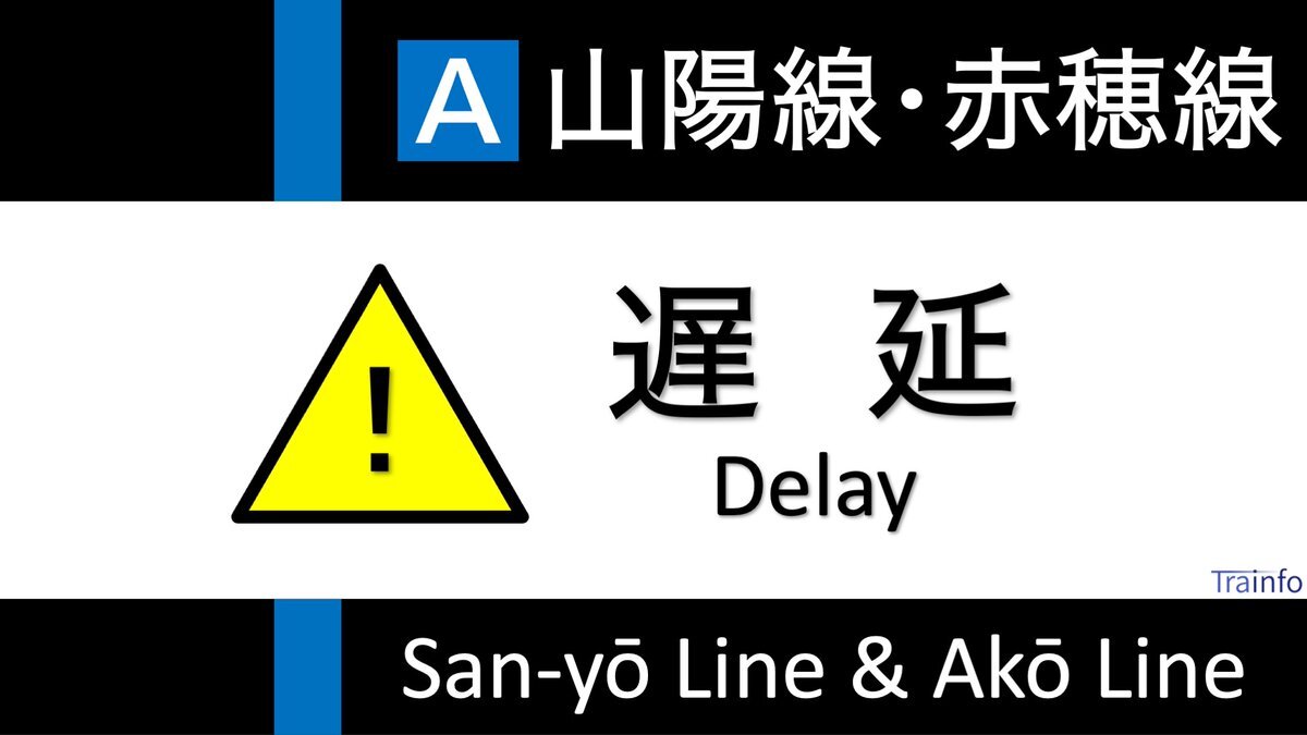 【山陽線・赤穂線 下り線 遅延情報】 山陽本線と赤穂線は、140字で書き切れない複数トラブルの影響で、姫路〜相生〜播州赤穂の下り・播州赤穂方面行の一部列車に最大20分程度の遅れがでています。 pic.x.com/W7ElAzm4Au x.com/Trainfo_West/s…