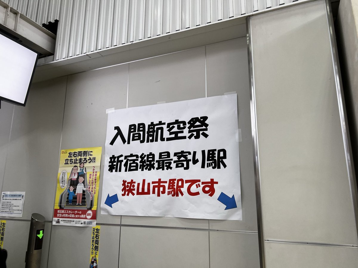 次回のための入間航空祭に行く時メモ。 ・混雑回避のため西武新宿線の狭山市駅からを公式は勧めている。だが展示や売店などがあるエリア、滑走路を挟む。展示や売店を見たいなら西武池袋線で。 ・だがメリットもある。狭山市駅側からだと、空がだいぶ広くなる。展示や売店のあるエリアは建物が