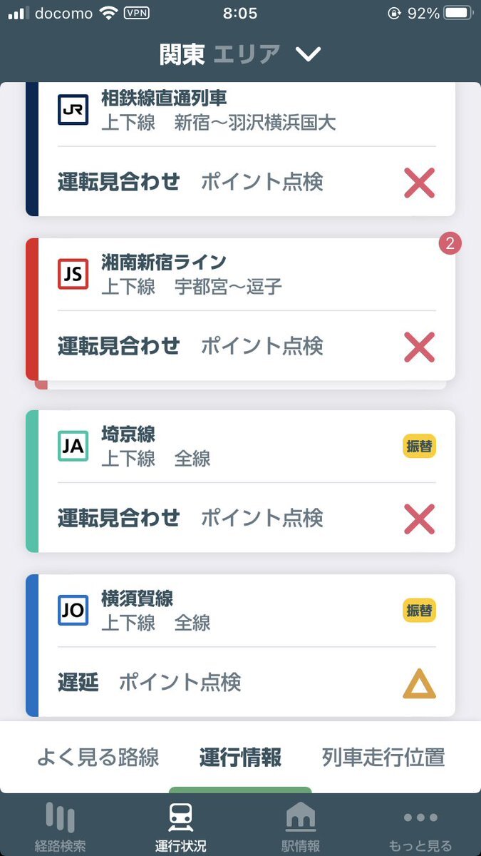 🚨【東北本線遅れ】 山手線内でのポイント故障、高崎線と常磐線内での車両点検、東海道本線内での踏切安全確認、及びそれらに伴う混雑の影響で、東京・上野〜宇都宮間に遅れがでています #埼京線